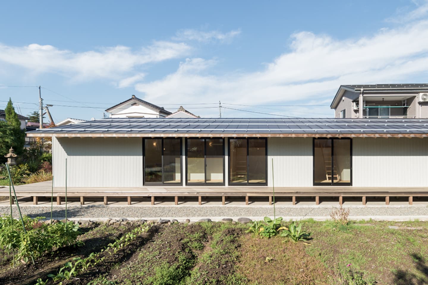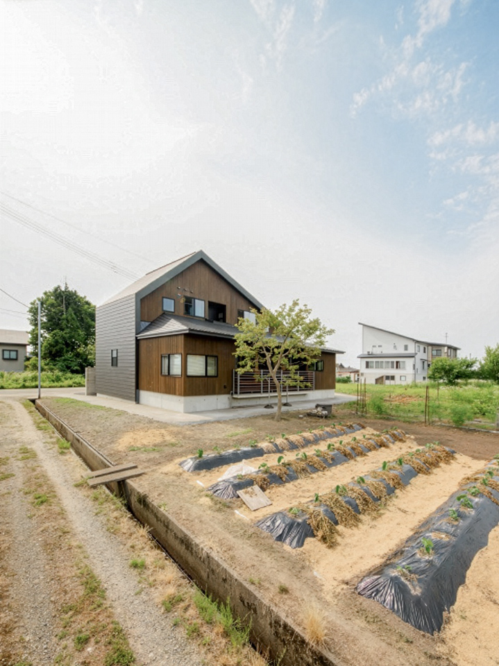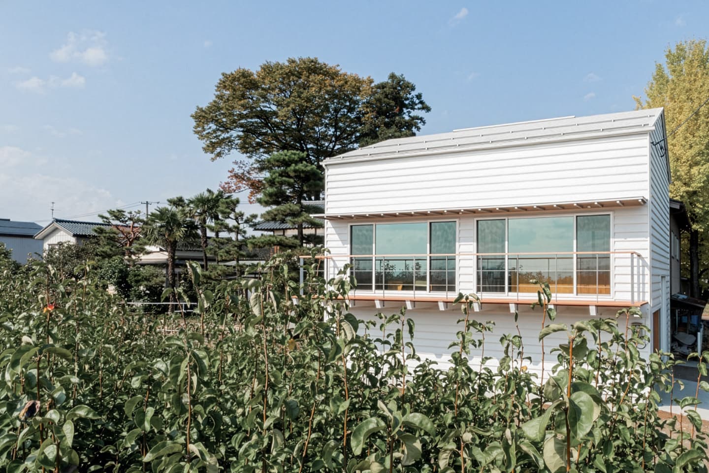 信濃川と中ノ口川に挟まれた中洲のような地域。ここは肥沃な土壌が広がっており、数多くの果物畑が点在する。遠方に山々を望む梨畑の一画にこの家は建つ。