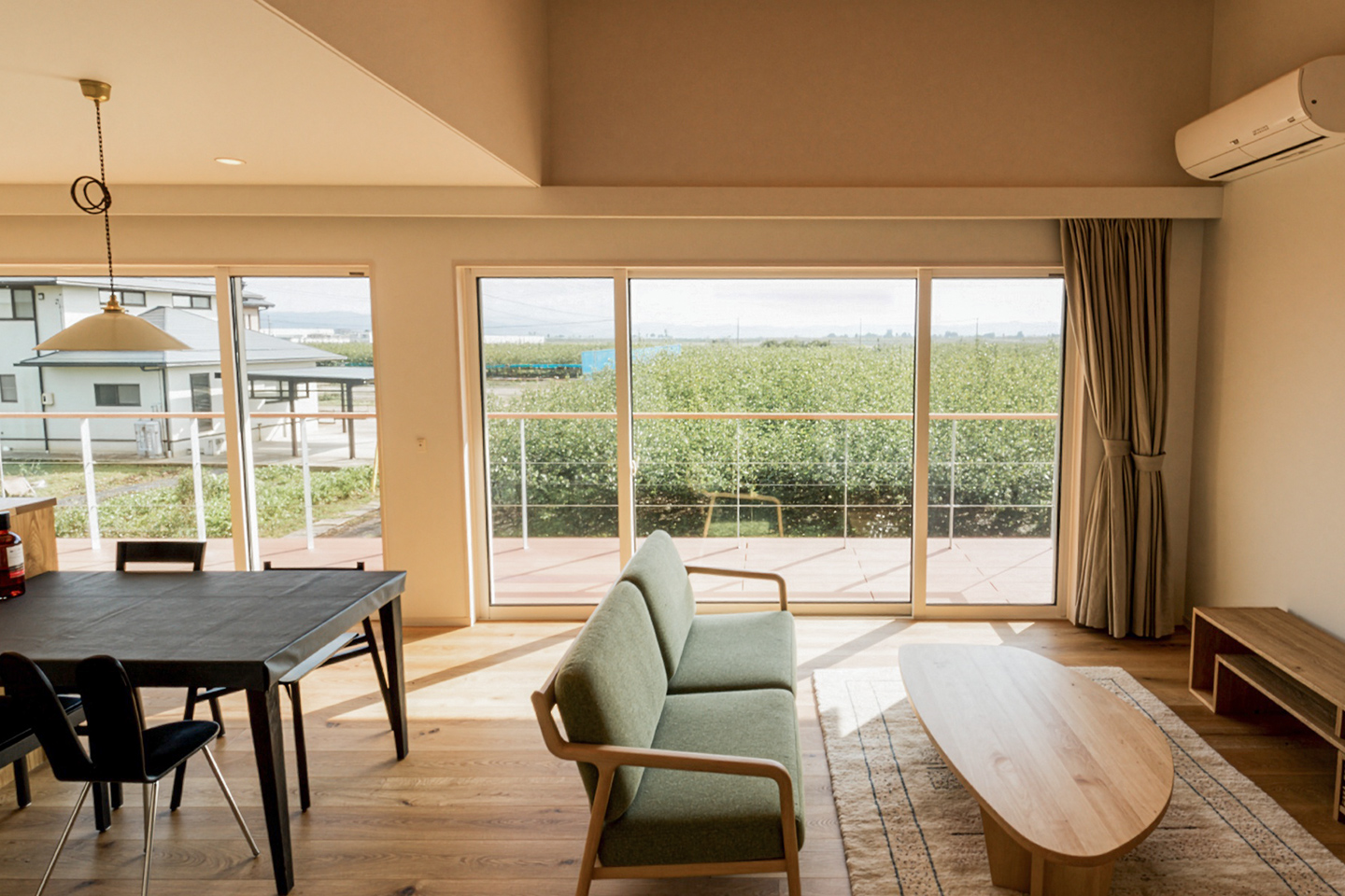 どこまでも続く梨畑に浮かび、遠くの山々を望む生活空間はどこを探しても見つからない特別な空間になった。