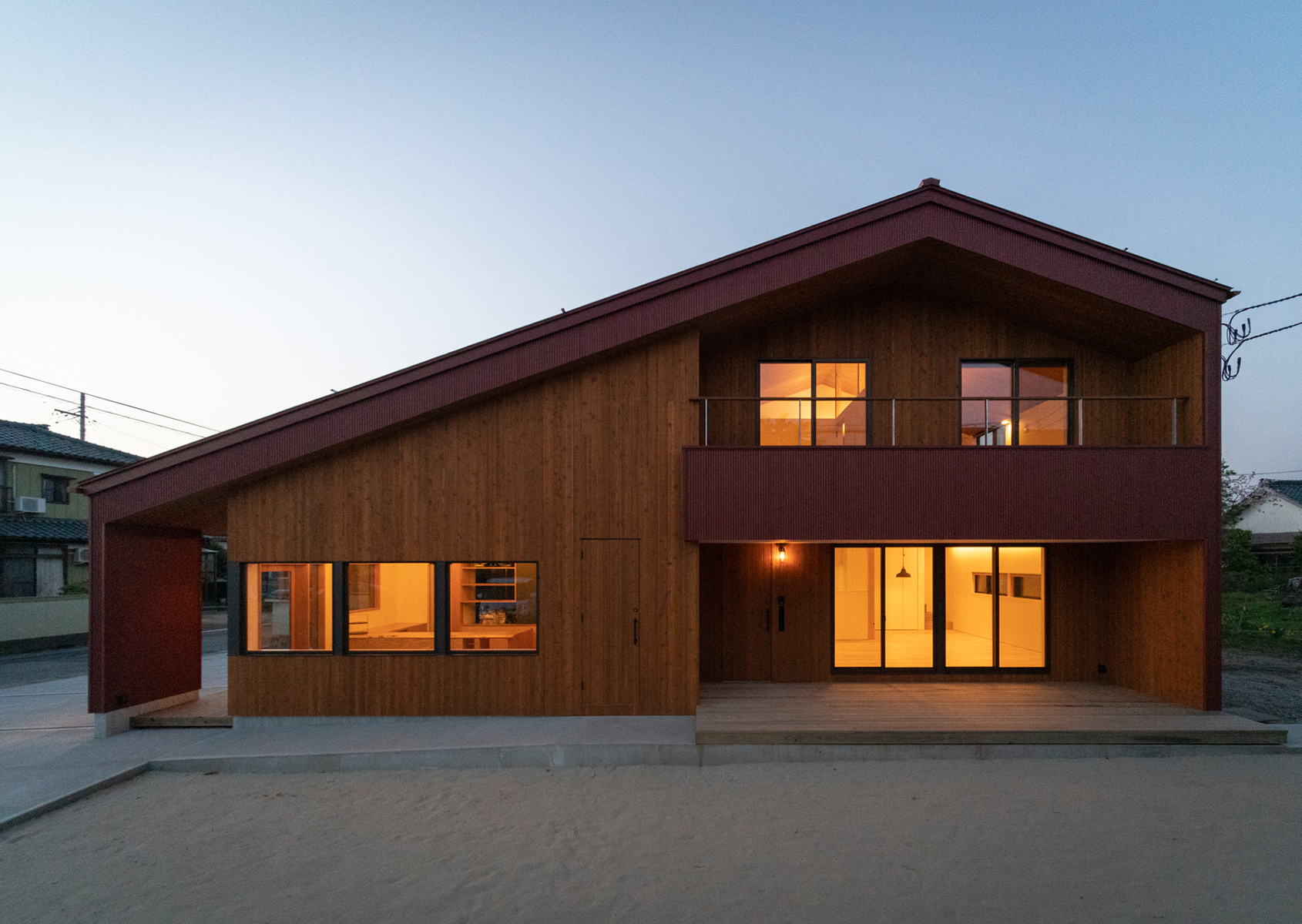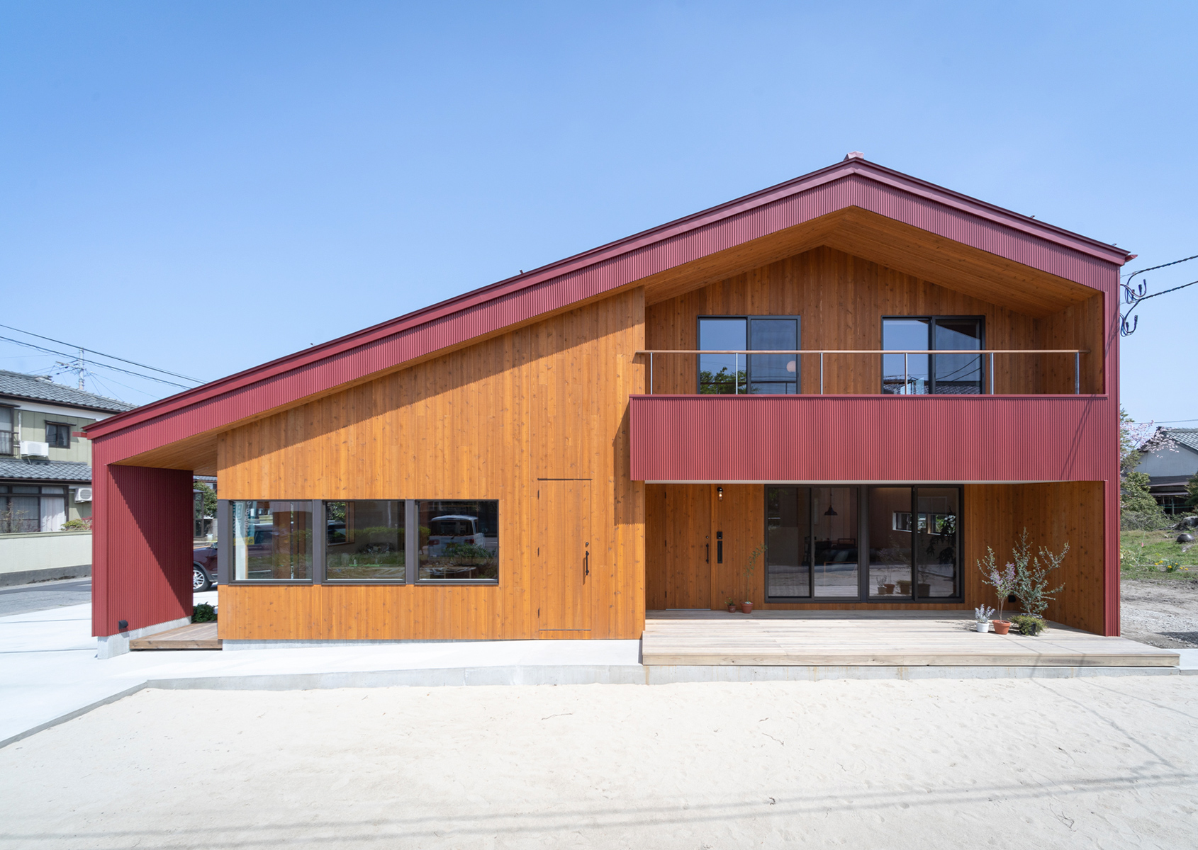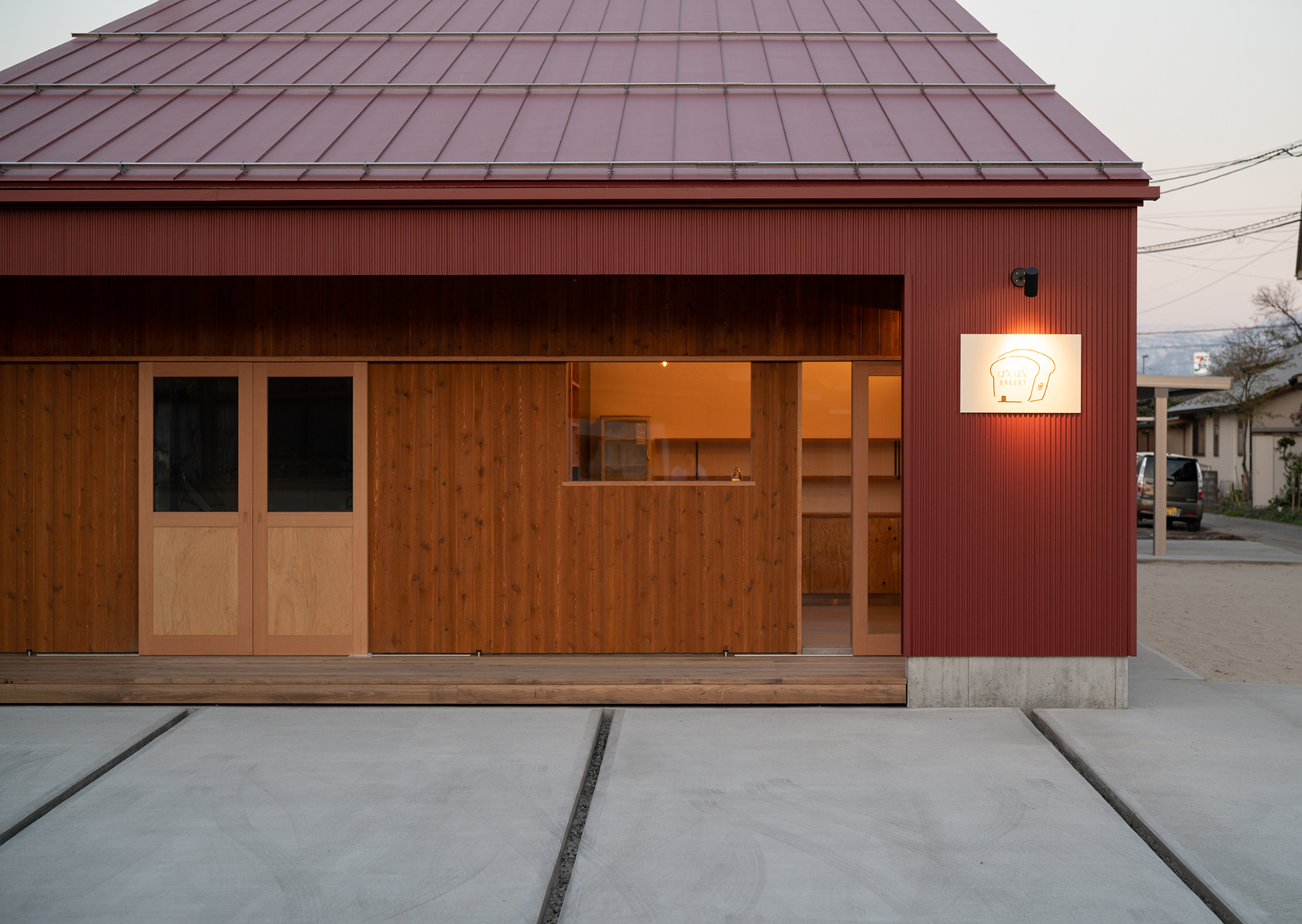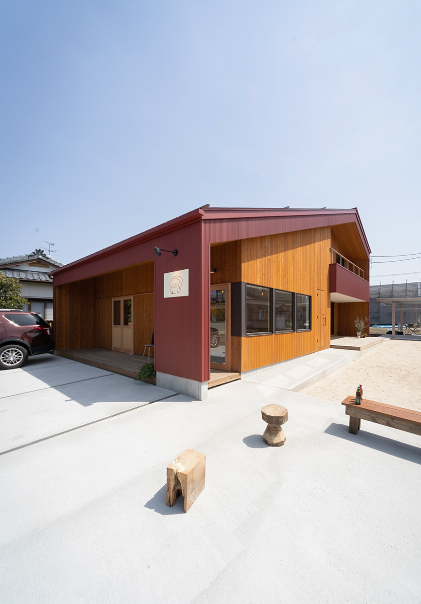 店舗部と住宅部にかかる大屋根が、外観デザインに安定感と象徴性の両方をもたらし、外壁のレンガ色と相まって、ぱろぱとベーカリーの大きな特徴となっています。これはご主人の作るパンのように、永く地域の人々に愛されつつも、シンボリックな存在となるよう意図して考えました。