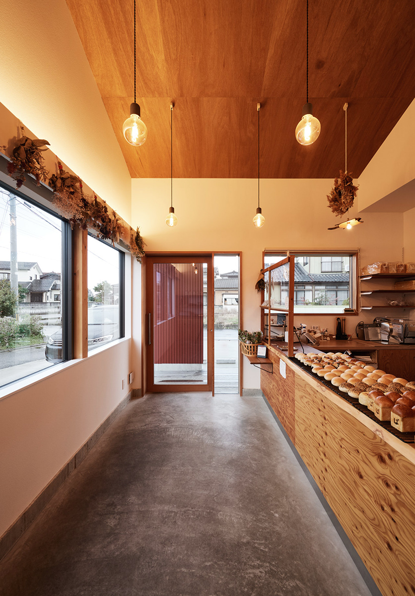 新発田市郊外へのパン屋併用住宅の計画です。東京都内で修業を積んだご主人が作るパンは、バラエティー豊富で洗練されていながらも、毎日食べたくなるような素朴で奥深い味が売りとなっています。