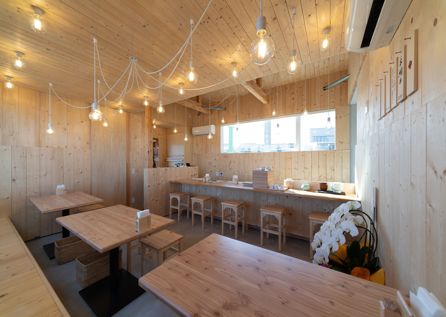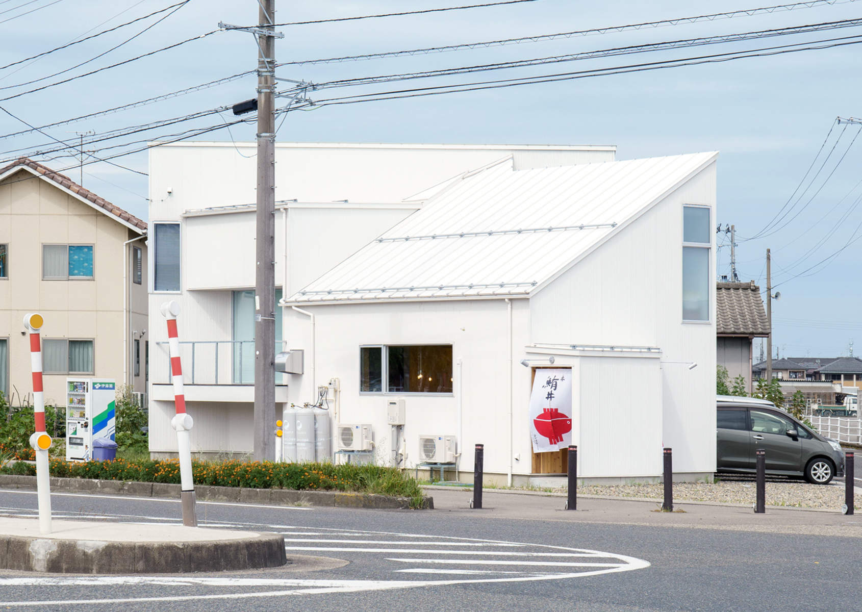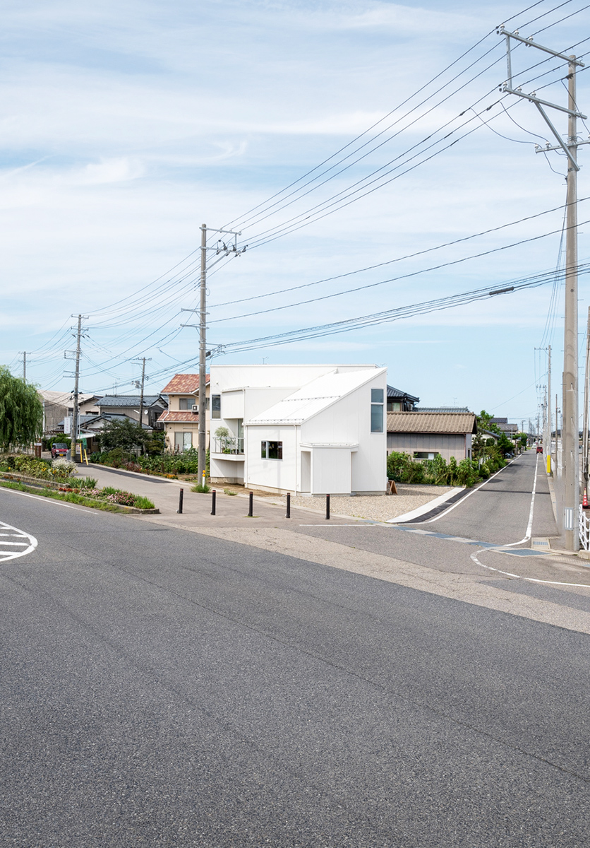 直角三角形のような形状をした敷地にあわせて建築の軸をふり、ボリュームを3つに分割した特異な形状とすることで、人目を惹くようなサイン性をもたせています。その一方で、外観は色味を統一することで景観に配慮しています。