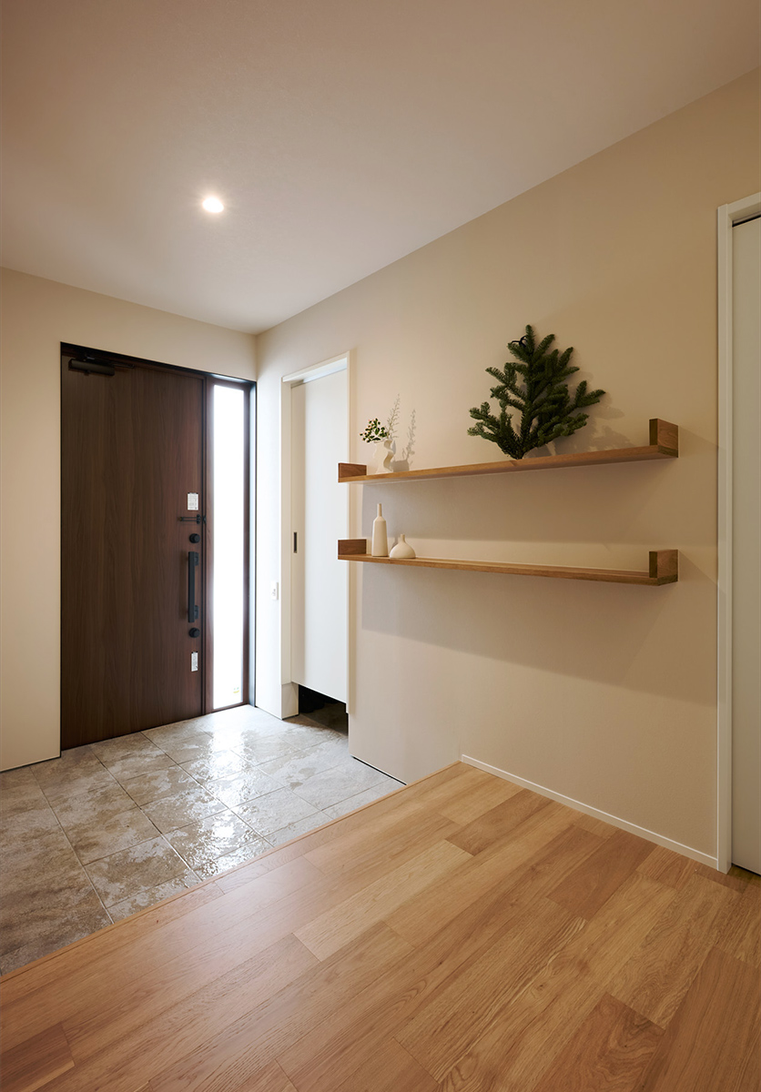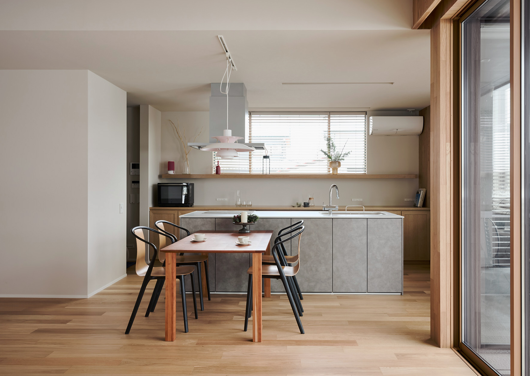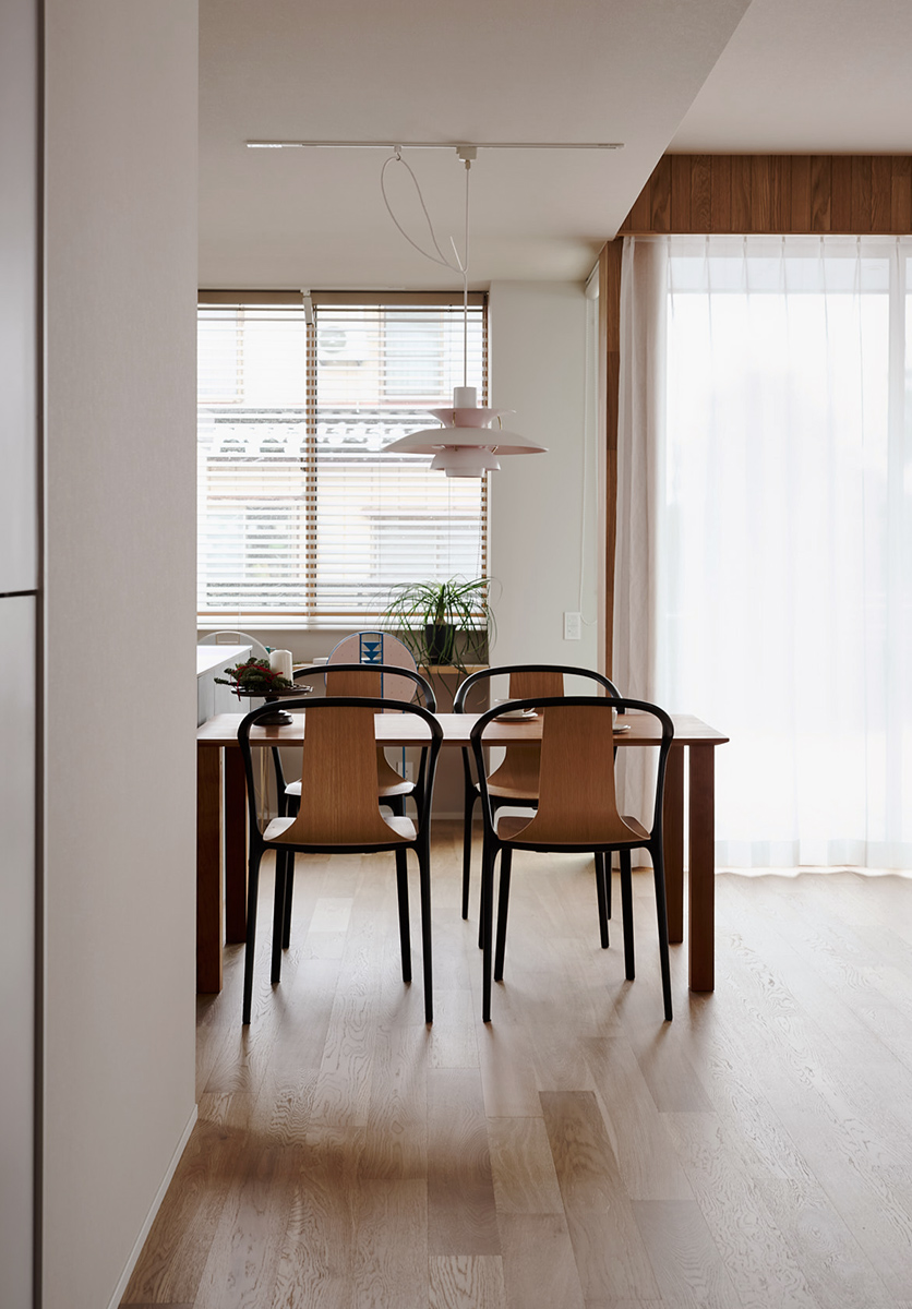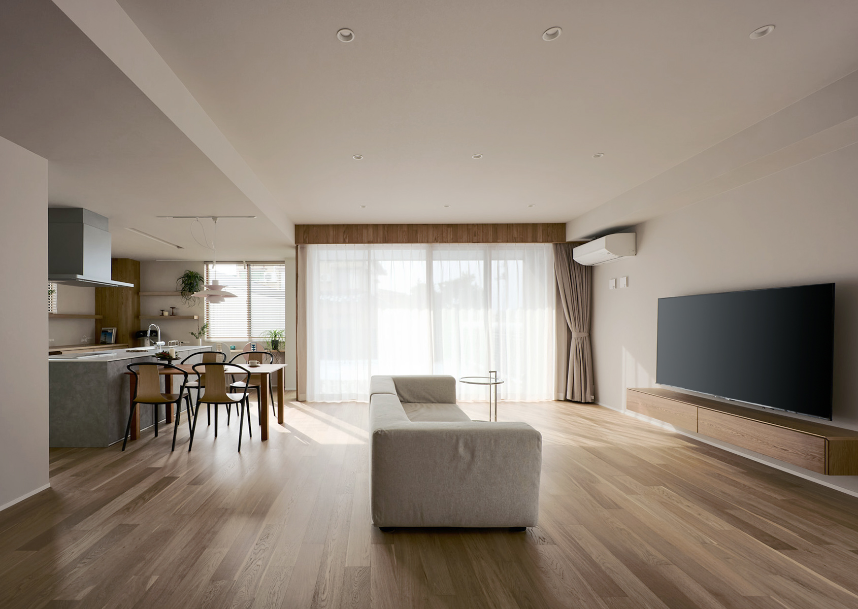 二世帯が共に暮らしていた以前の建物は、畳の続き間や広い玄関など、奥ゆかしさを感じる住宅でした。子どもたちも育ち、使用しない部屋も多く残っていたため、セカンドライフへ向けた新しいの暮らしへアップデートを計画しました。