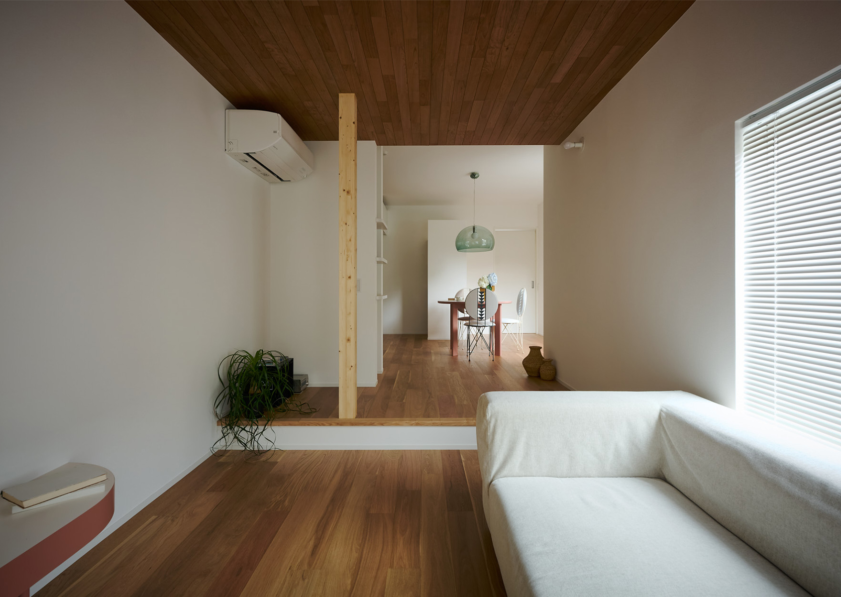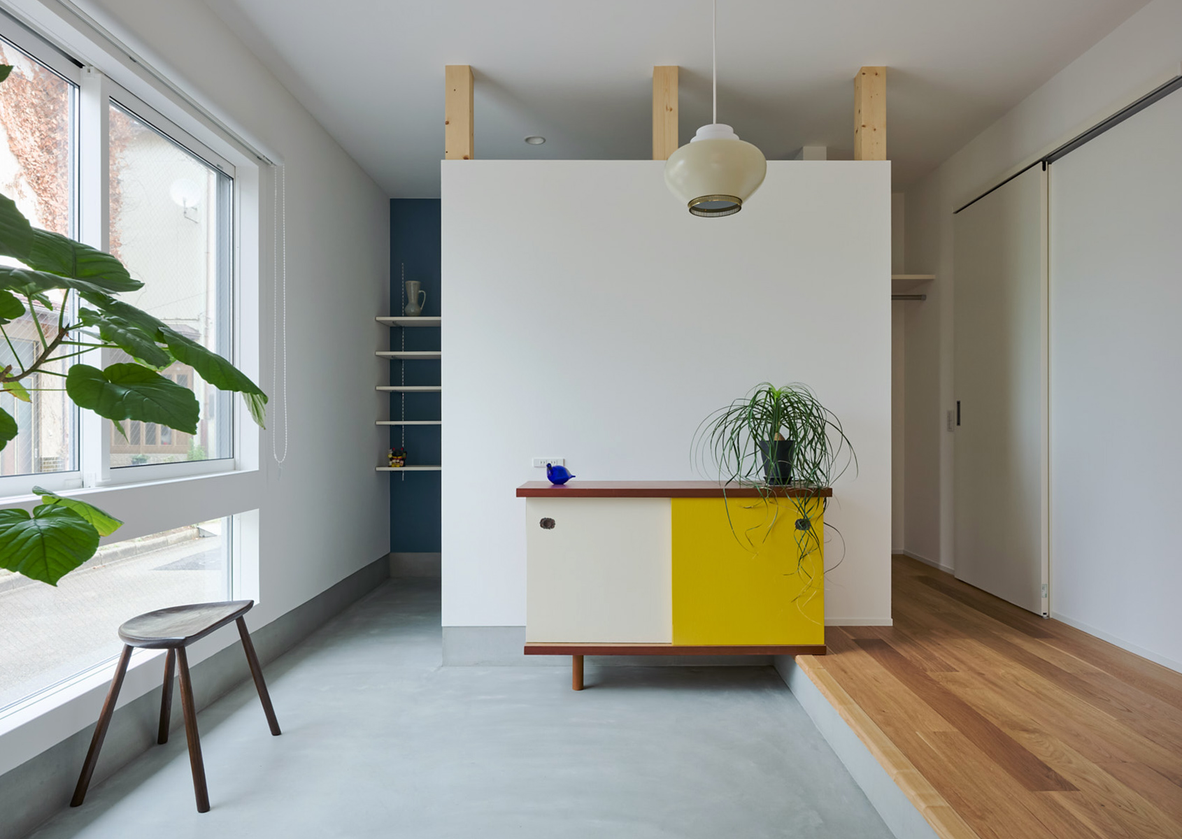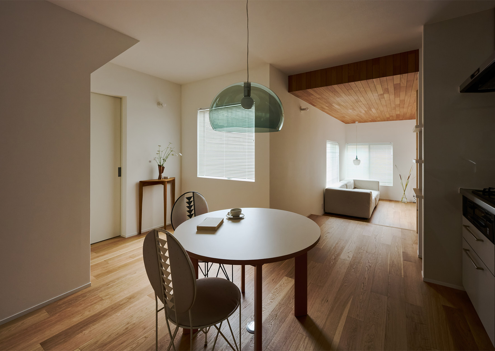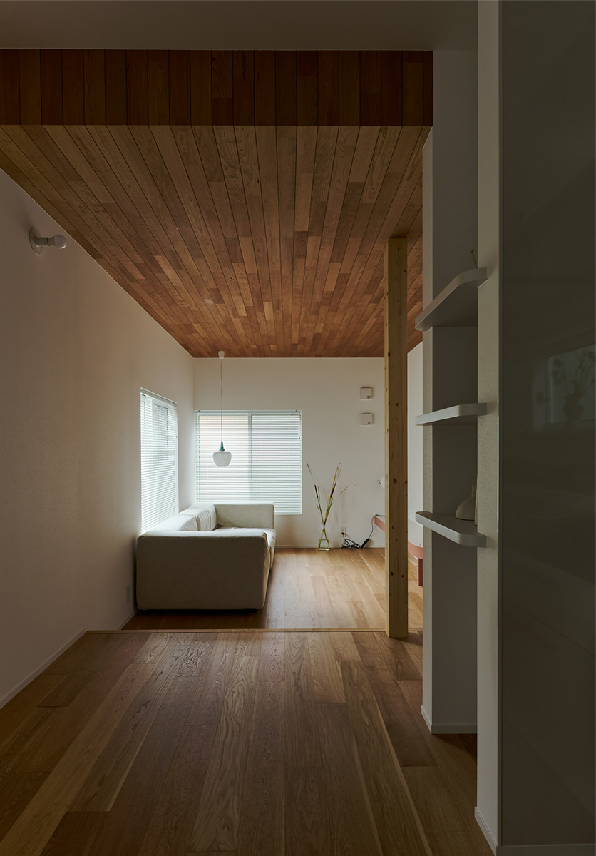 減築部分の屋根は既存部分に合わせて切妻とし、ふたつの建物がひとつにつながるような外観へと整えました。隣地境界が非常に近く、施工時の安全性にも配慮し、外壁には目地を設けています。その目地もまた、この家らしい素朴な表情を生み出し、静かに佇む愛嬌のある家となりました。