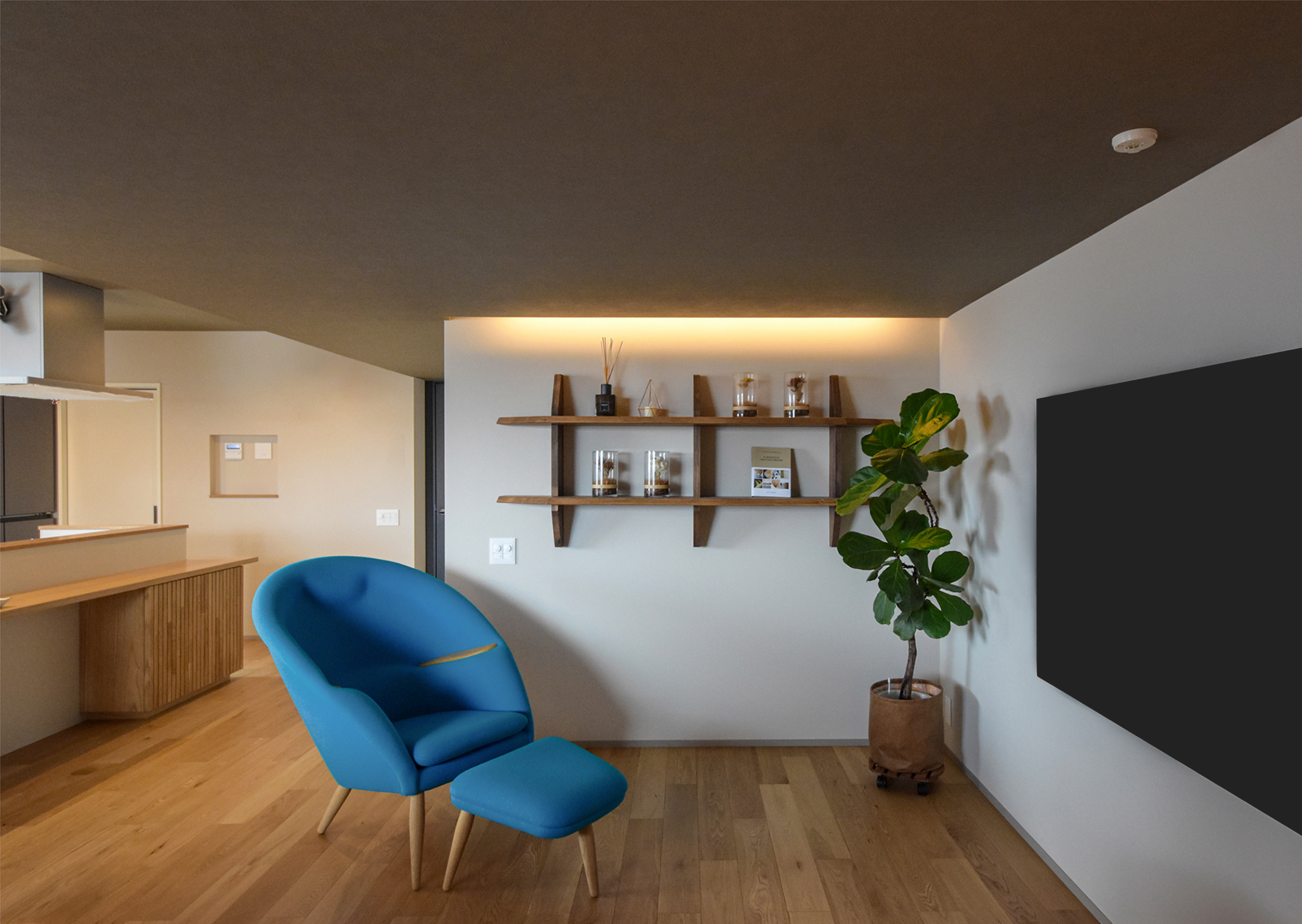 ご夫婦がもともと購入していた、アーノルド・マドセンによる「Odaラウンジチェア」などの北欧家具となじむよう、造作家具や壁紙の色まで丁寧にコーディネート。素材感と光が穏やかに響き合う、セカンドライフにふさわしい心地よい住まいへと生まれ変わりました。