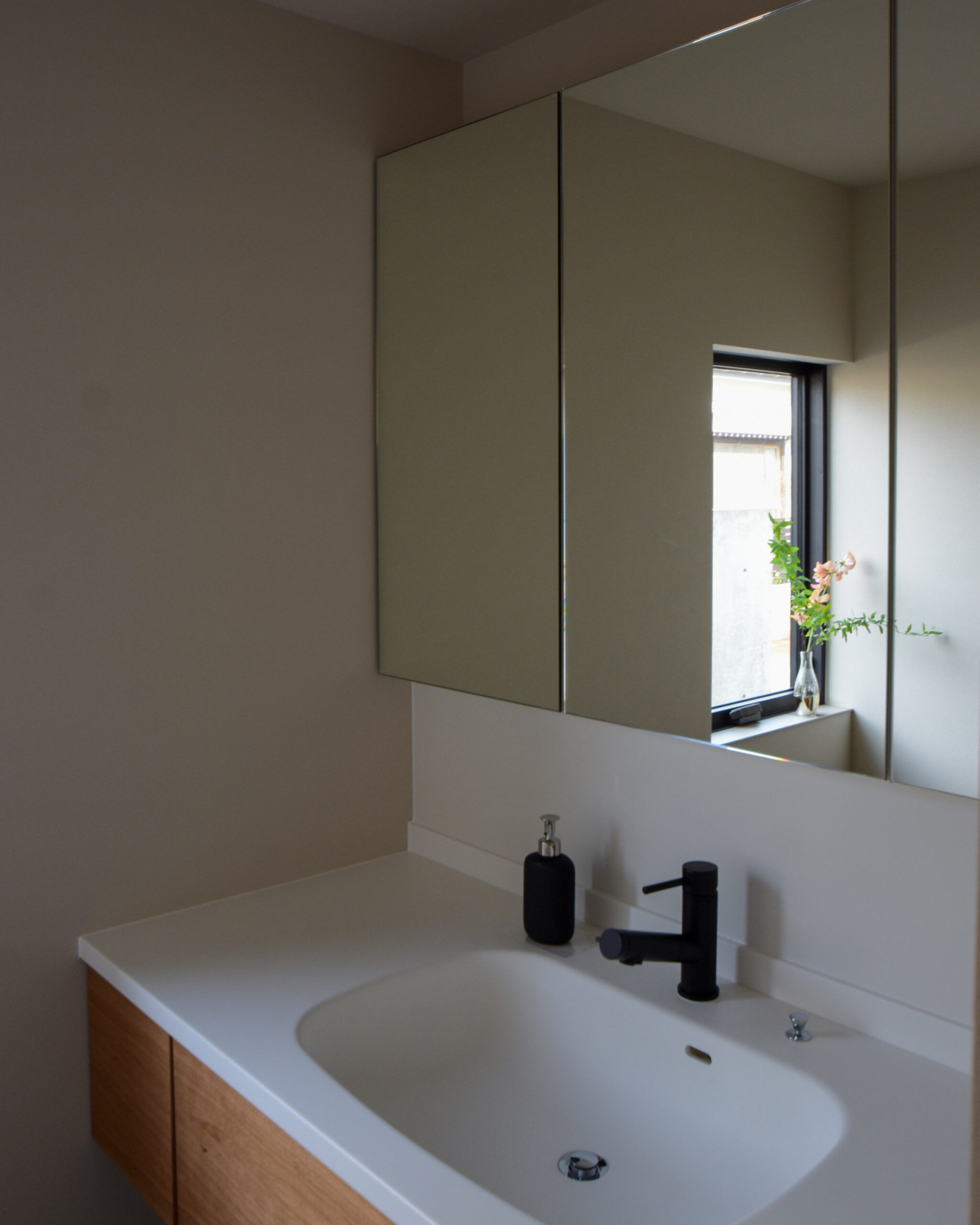 玄関は来客にもゆとりを感じてもらえる広さを確保し、日常の何気ない時間が心地よく重なり合う、静かで豊かな住まいとなりました。