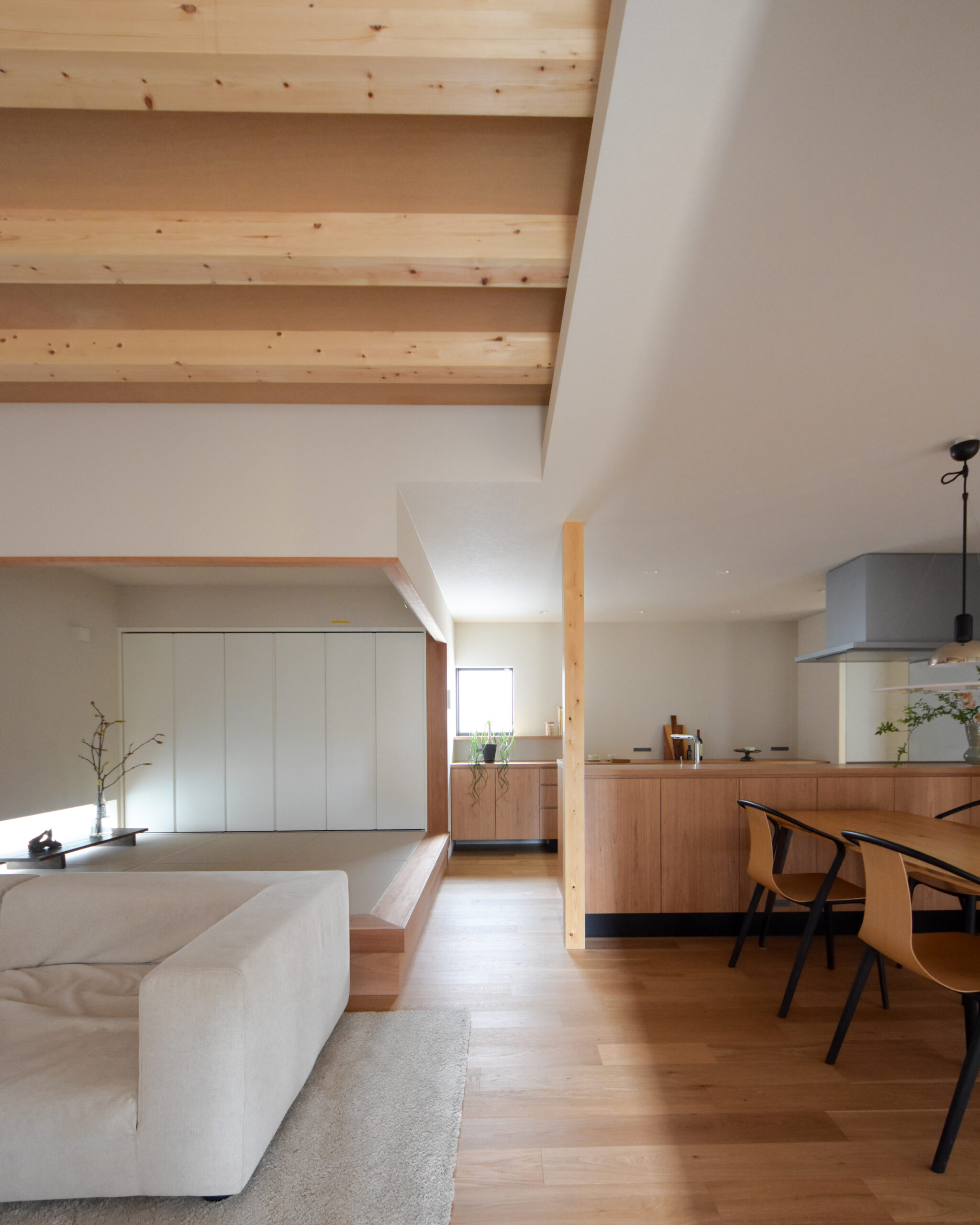 庭と連続するLDKは、家族が自然と集まる住まいの中心。