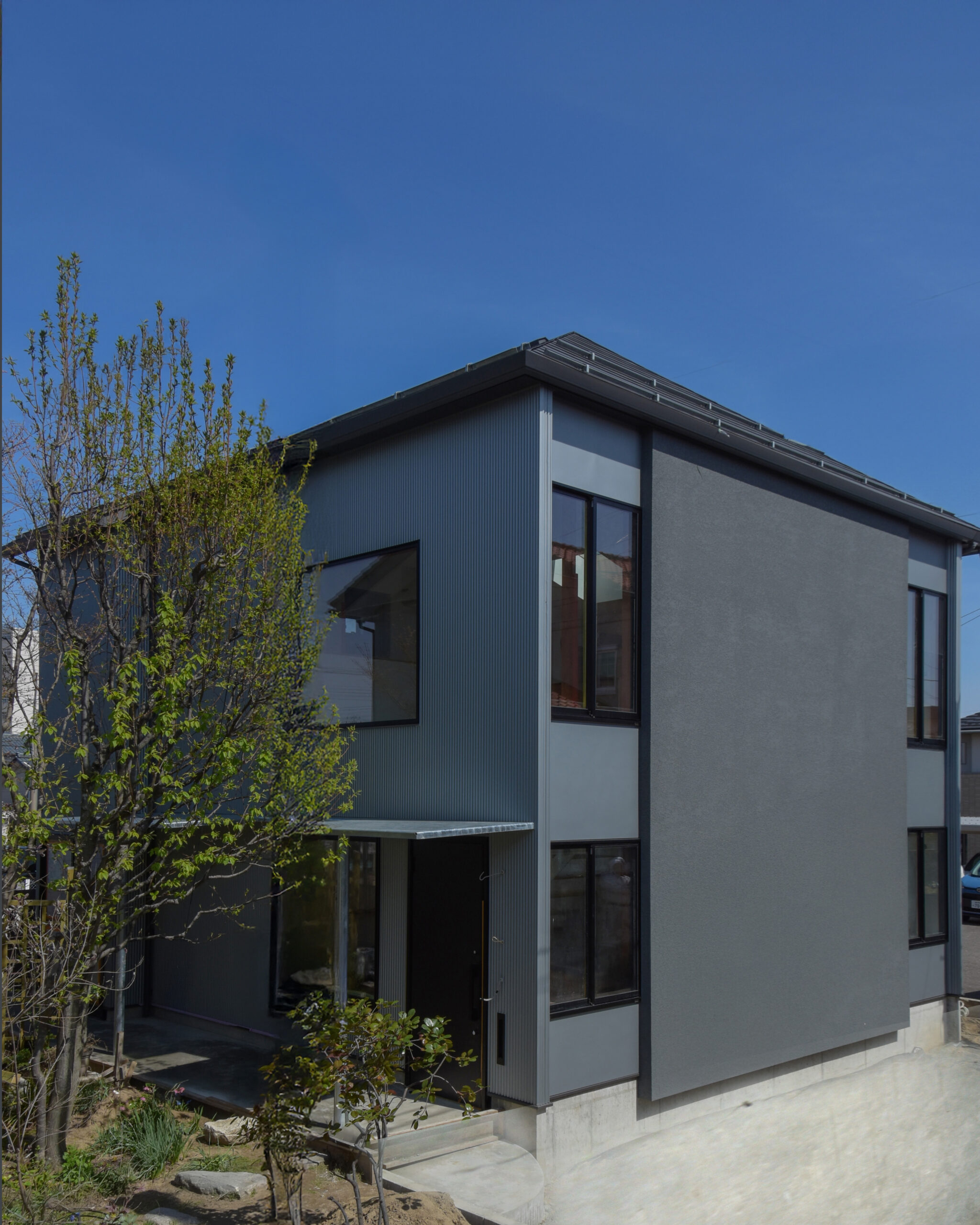 ボリュームのずれによって生まれる外観の陰影は、シンプルな構成の中に奥行きを与え、時間とともに表情が変化する住まいを目指しています。
