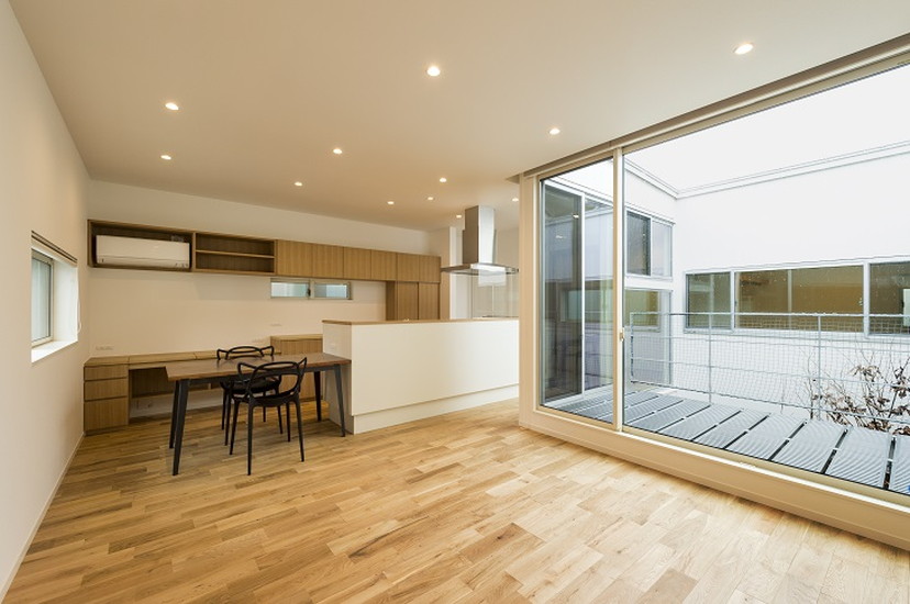 中庭は、1階そして2階の隅々まで光を行き渡らせる。