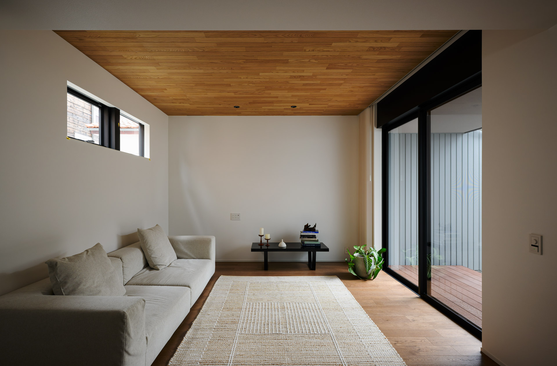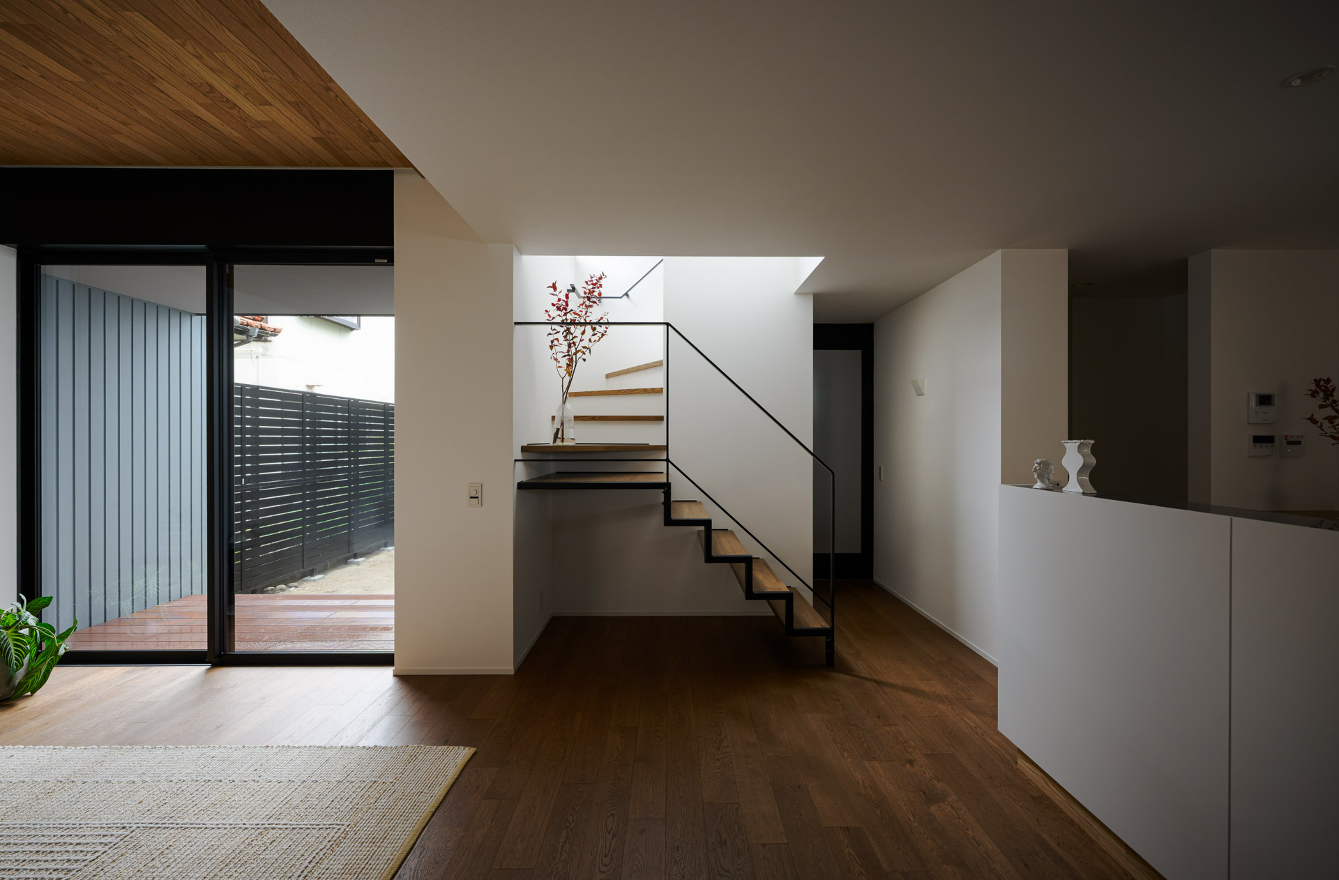 敷地条件から自然に導き出されたプランと素材の工夫によって、光や風、質感が穏やかに響き合う、落ち着いた時間を過ごせる住まいとなりました。